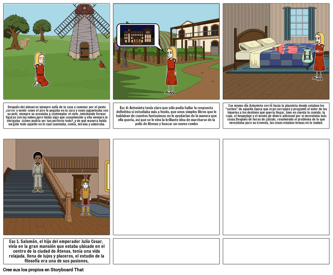 Esc 4: Antonieta tenía claro que sólo podía hallar la respuesta definitiva si estudiaba más a fondo, que unos simples libros que le hablaban de cuentos fantasiosos no le ayudarían de la manera que ella quería, así que se le vino la brillante idea de marcharse de la polis de Atenas y buscar un nuevo rumbo