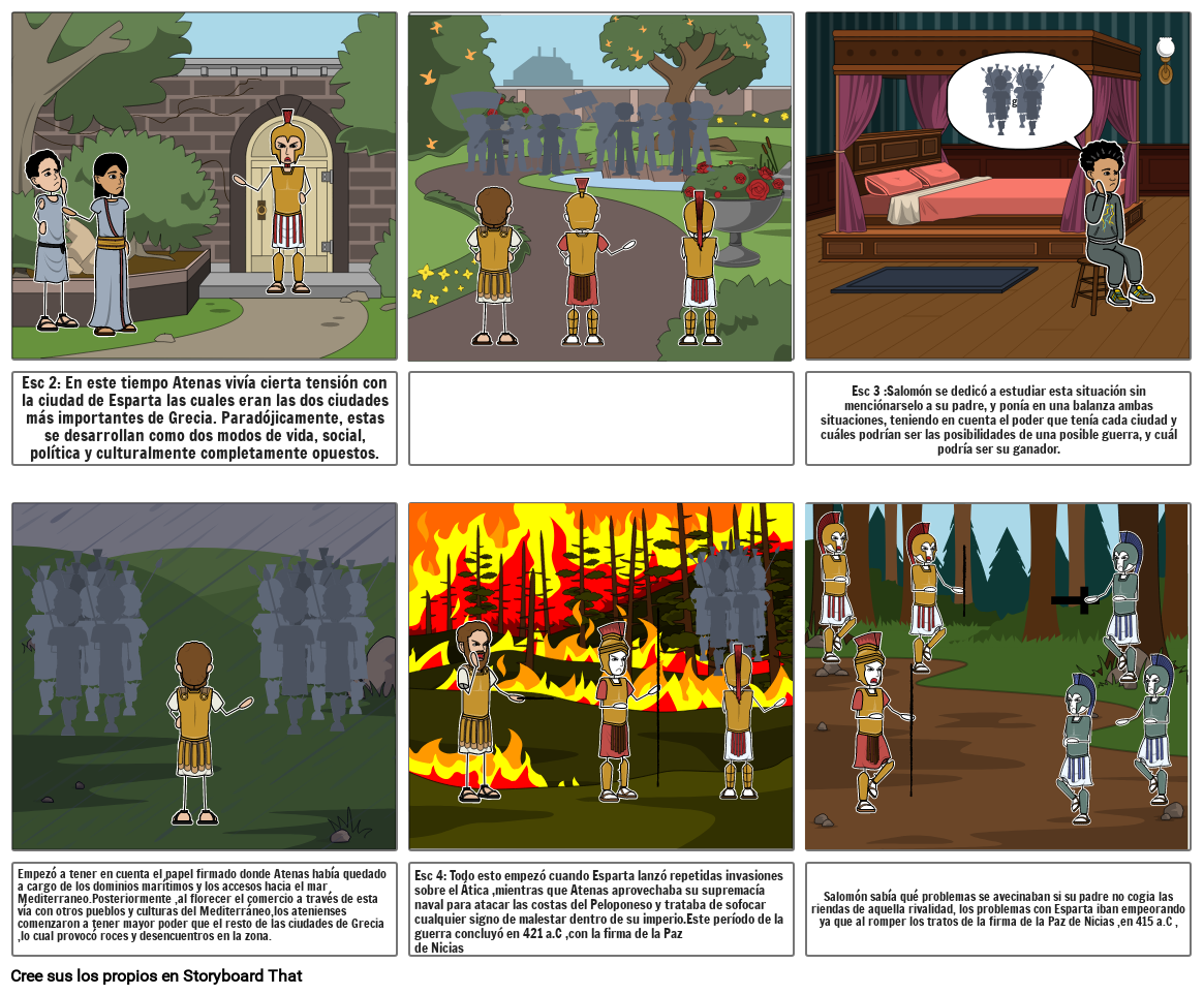 Esc 4: Todo esto empezó cuando Esparta lanzó repetidas invasiones sobre el Ática ,mientras que Atenas aprovechaba su supremacía naval para atacar las costas del Peloponeso y trataba de sofocar cualquier signo de malestar dentro de su imperio.Este período de la guerra concluyó en 421 a.C ,con la firma de la Pazde Nicias