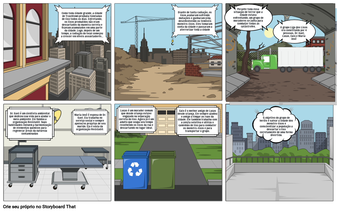 O grupo Liga dos Lixos era constituído por 4 pessoas: Dr. Gael, Lucas, Caio e Maria José