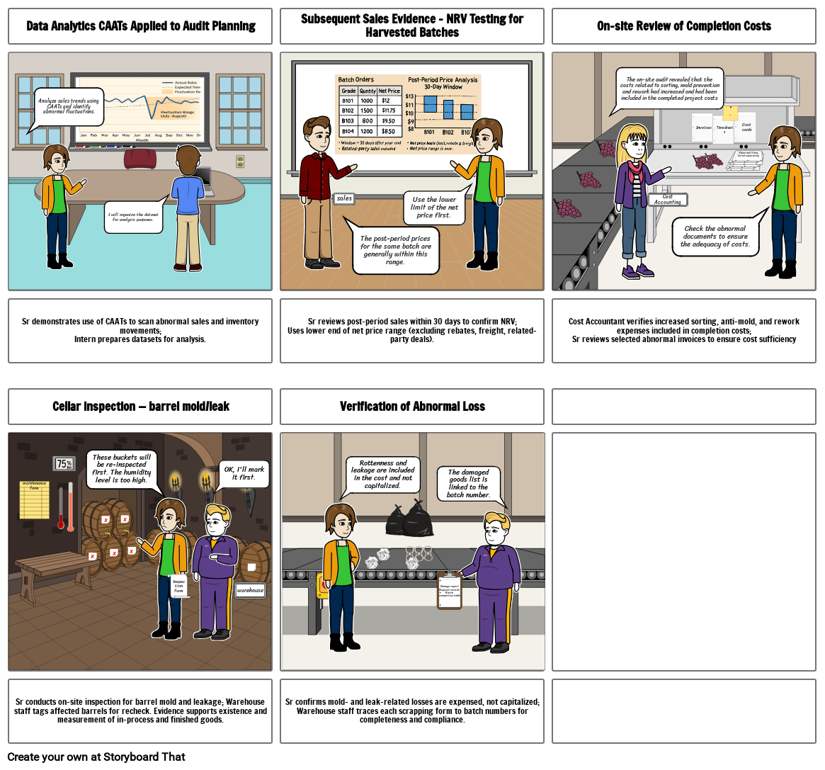 Sr demonstrates use of CAATs to scan abnormal sales and inventory movements; Intern prepares datasets for analysis.