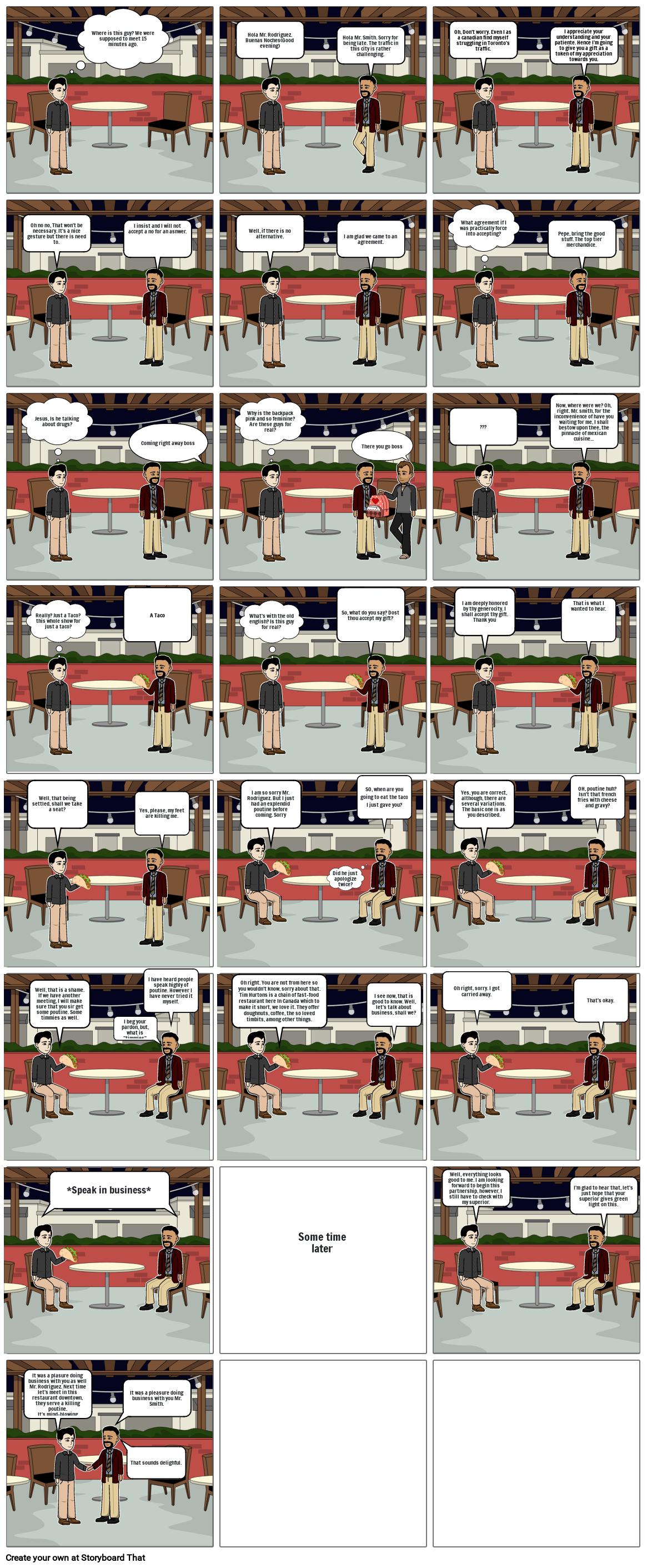 Now, where were we? Oh, right. Mr. smith, for the inconvenience of have you waiting for me, I shall bestow upon thee, the pinnacle of mexican cuisine...