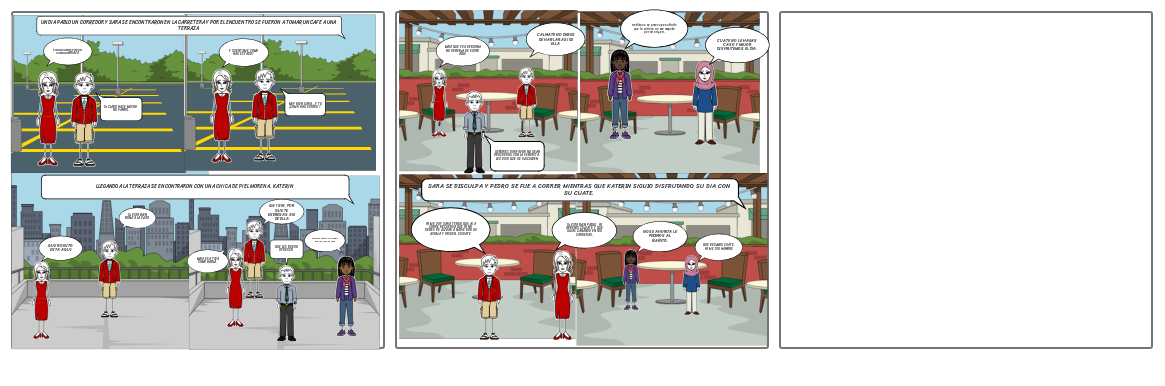 UN DIA PABLO UN CORREDOR Y SARA SE ENCONTRARON EN LA CARRETERA Y POR EL ENCUENTRO SE FUERON A TOMAR UN CAFE A UNA TERRAZA