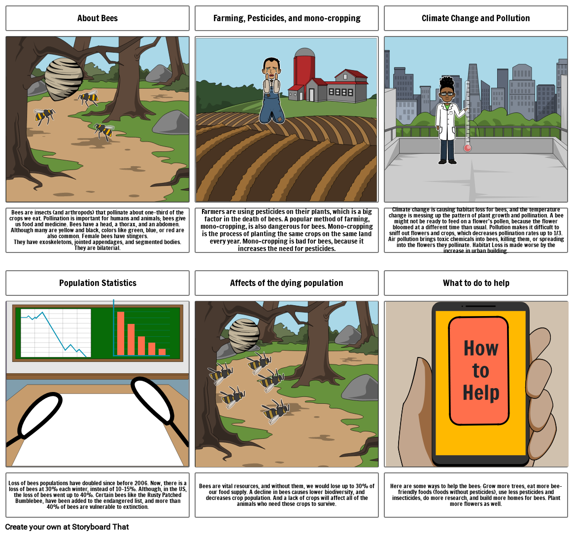 Climate change is causing habitat loss for bees, and the temperature change is messing up the pattern of plant growth and pollination. A bee might not be ready to feed on a flower's pollen, because the flower bloomed at a different time than usual. Pollution makes it difficult to sniff out flowers and crops, which decreases pollination rates up to 1/3. Air pollution brings toxic chemicals into bees, killing them, or spreading into the flowers they pollinate. Habitat Loss is made worse by the increase in urban building.