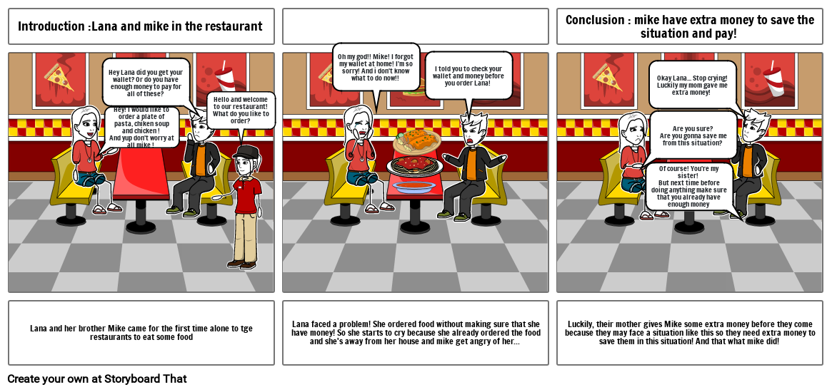 Lana faced a problem! She ordered food without making sure that she have money! So she starts to cry because she already ordered the food and she's away from her house and mike get angry of her...