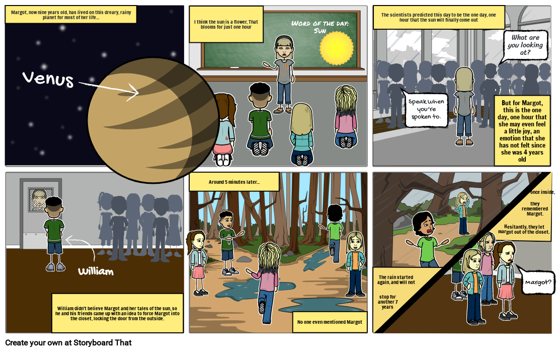 William didn't believe Margot and her tales of the sun, so he and his friends came up with an idea to force Margot into the closet, locking the door from the outside.