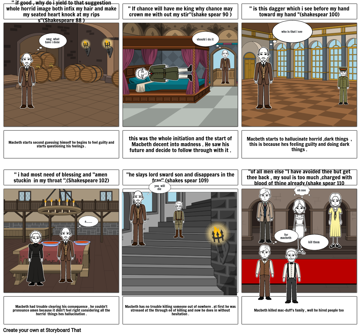 this was the whole initiation and the start of Macbeth decent into madness . He saw his future and decide to follow through with it .