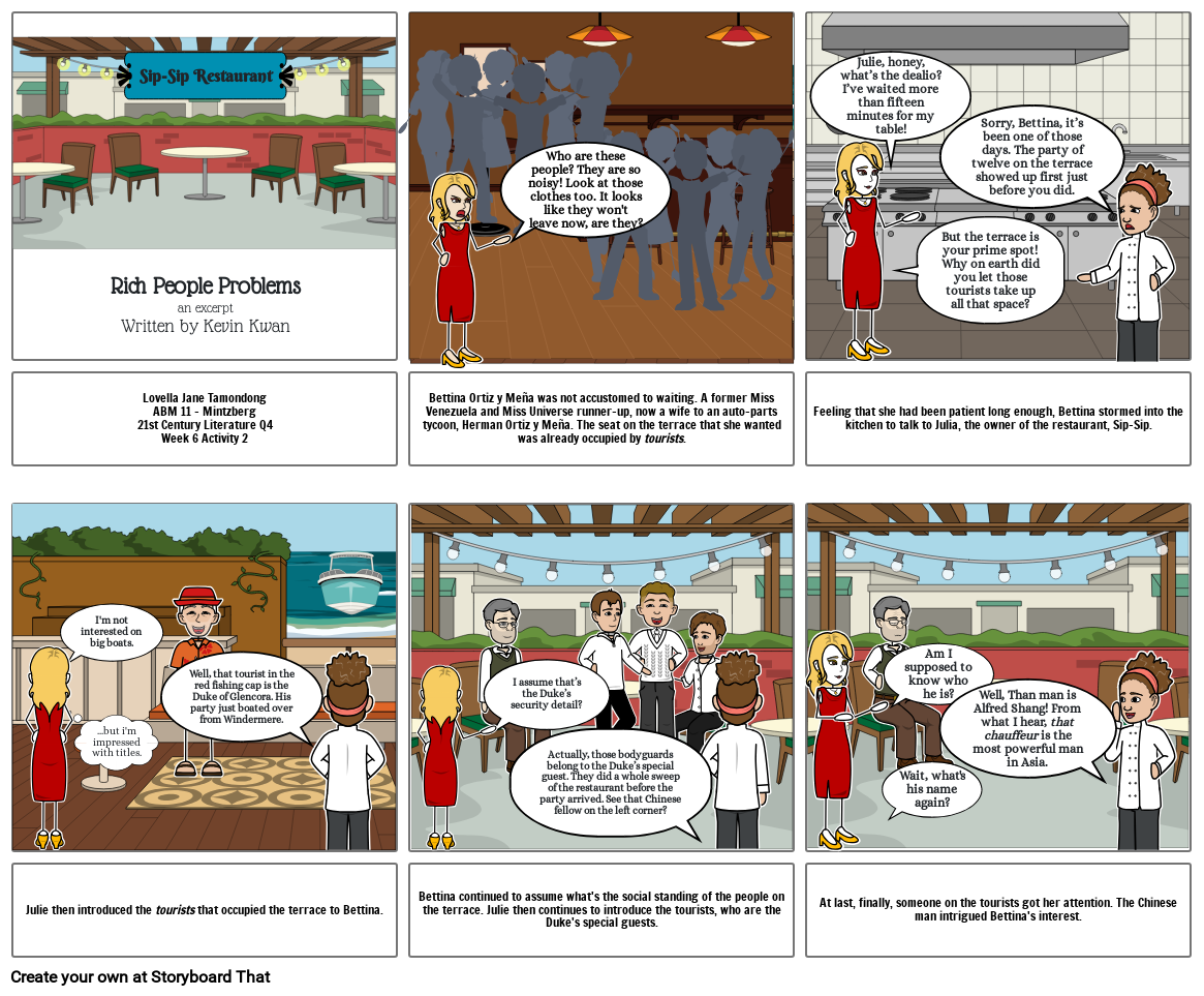 Bettina continued to assume what's the social standing of the people on the terrace. Julie then continues to introduce the tourists, who are the Duke's special guests.