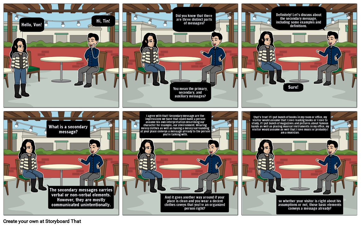 I agree with that! Secondary message are the impressions we have that could make a person assume his own interpretation describing our character for example; our environment. Wearing messy clothes as well as having a messy surrounding at your place conveys a message already to the person you're talking with.