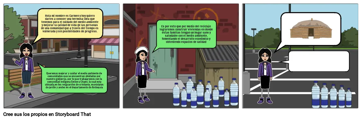 Hola mi nombre es Carmen y hoy quiero darles a conocer una hermosa idea que tenemos para el cuidado del medio ambiente y mejorar la calidad de vida de las personas de una comunidad que a través del tiempo es vulnerada y sin posibilidades de progreso.