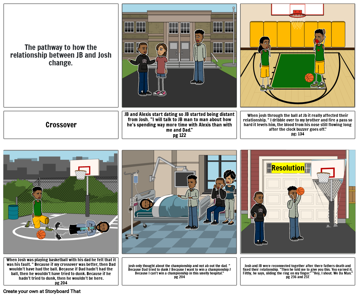 When josh through the ball at Jb it really affected their relationship. " I dribble over to my brother and fire a pass so hard it levels him, the blood from his nose still flowing long after the clock buzzer goes off."pg: 134