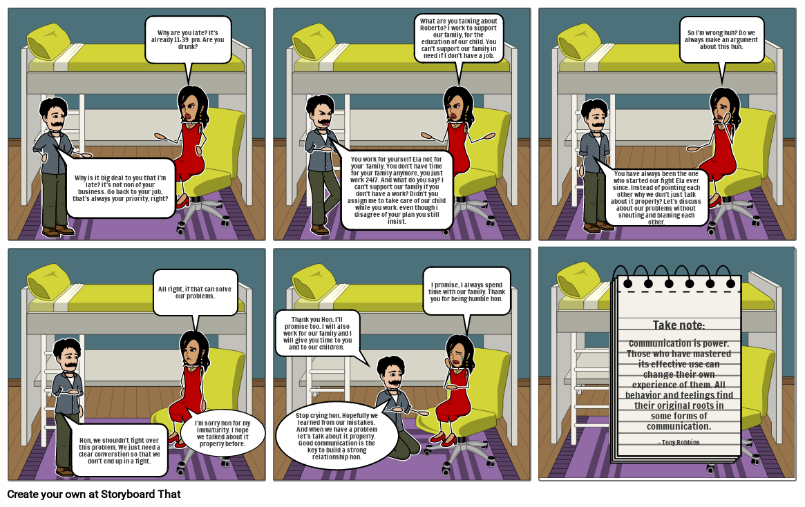 You work for yourself Ela not for your family. You don't have time for your family anymore, you just work 24/7. And what do you say? I can't support our family if you don't have a work? Didn't you assign me to take care of our child while you work. even though i disagree of your plan you still insist.