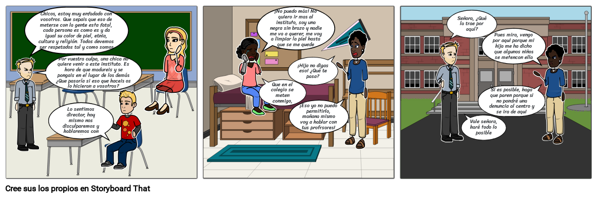 Chicos, estoy muy enfadado con vosotros. Que sepais que eso de meterse con la gente esta fatal, cada persona es como es y da igual su color de piel, etnia, cultura y religión. Todos devemos ser respetados tal y como somos