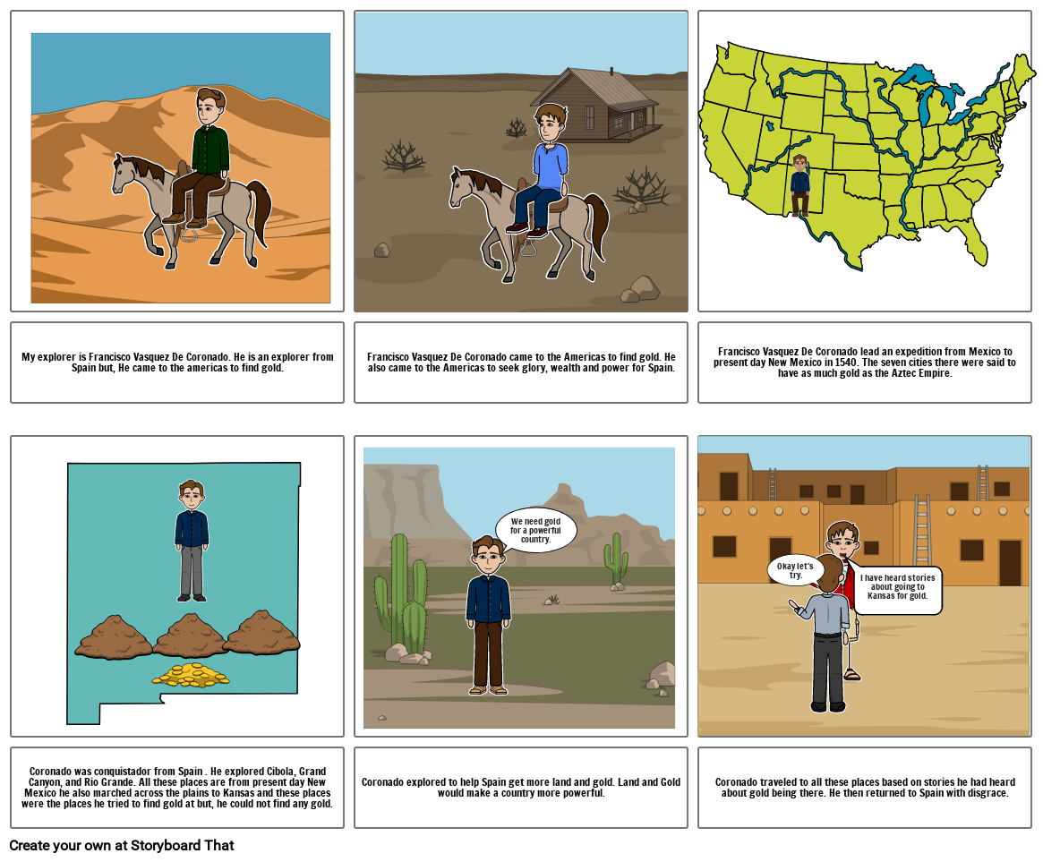 My explorer is Francisco Vasquez De Coronado. He is an explorer from Spain but, He came to the americas to find gold.