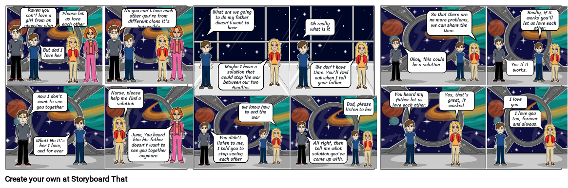 No you can't love each other you're from different clans it's impossible