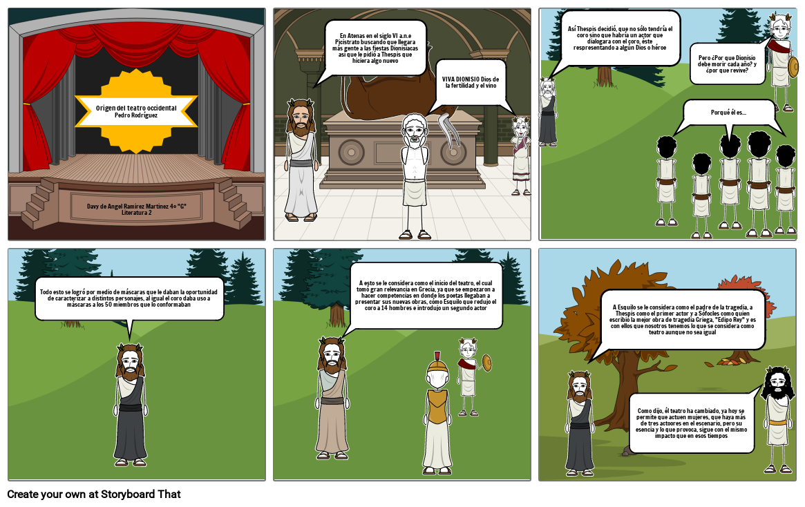 En Atenas en el siglo VI a.n.e Picistrato buscando que llegara más gente a las fiestas Dionisiacas así que le pidió a Thespis que hiciera algo nuevo