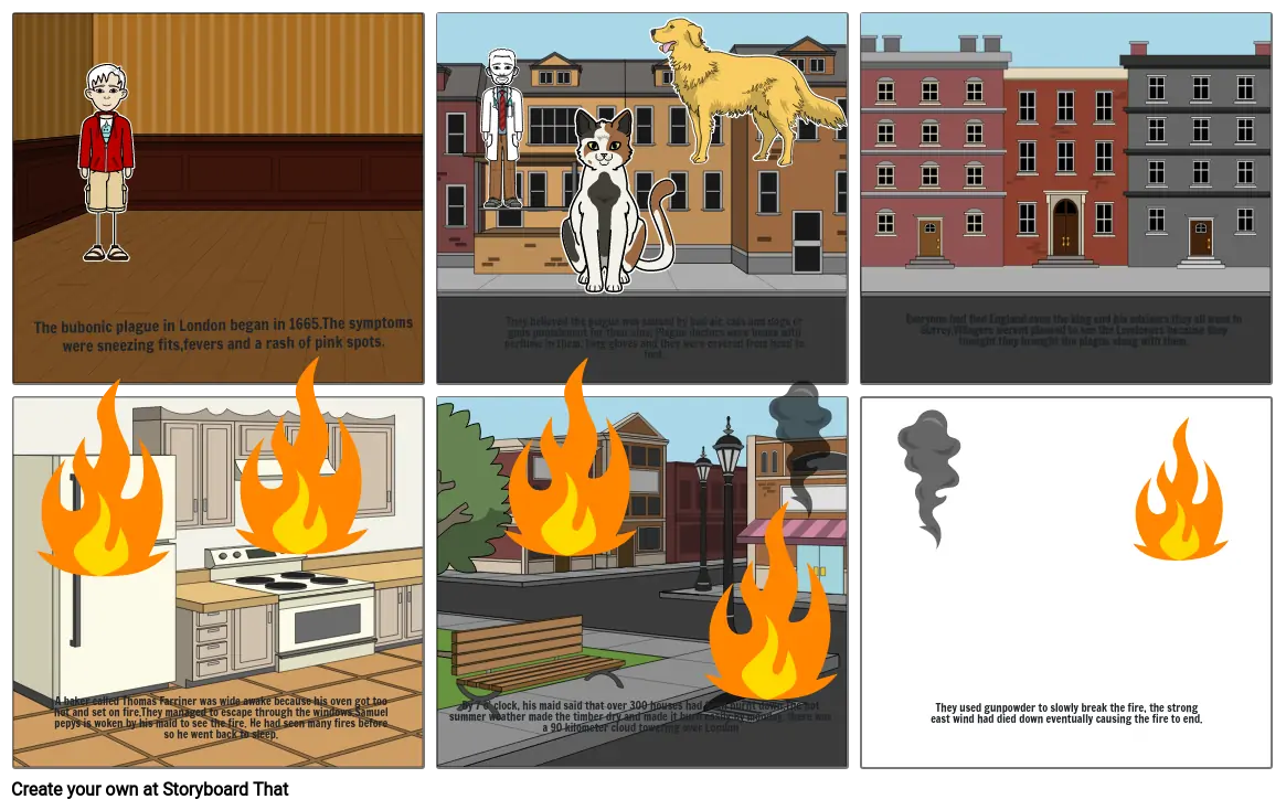 By 7 o’ clock, his maid said that over 300 houses had been burnt down.The hot summer weather made the timber dry and made it burn easily;By monday, there was a 90 kilometer cloud towering over London