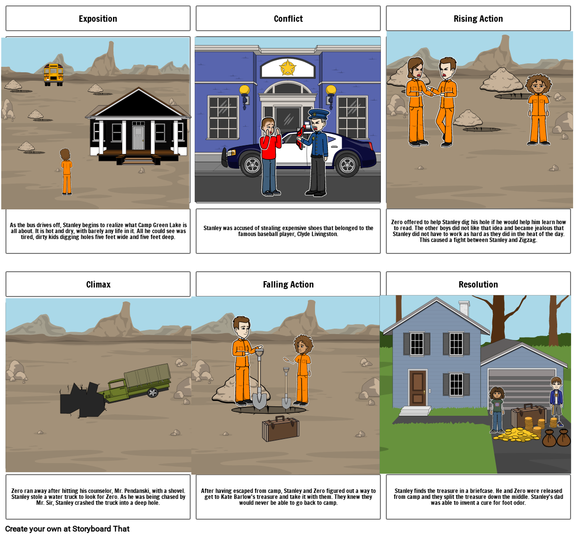 Zero offered to help Stanley dig his hole if he would help him learn how to read. The other boys did not like that idea and became jealous that Stanley did not have to work as hard as they did in the heat of the day. This caused a fight between Stanley and Zigzag.