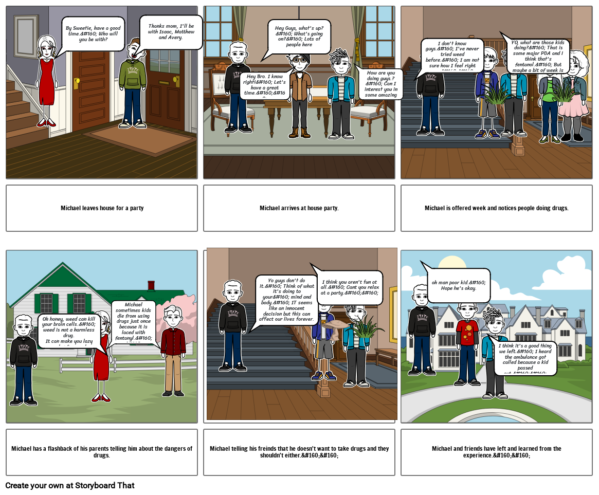 Michael telling his freinds that he doesn't want to take drugs and they shouldn't either.