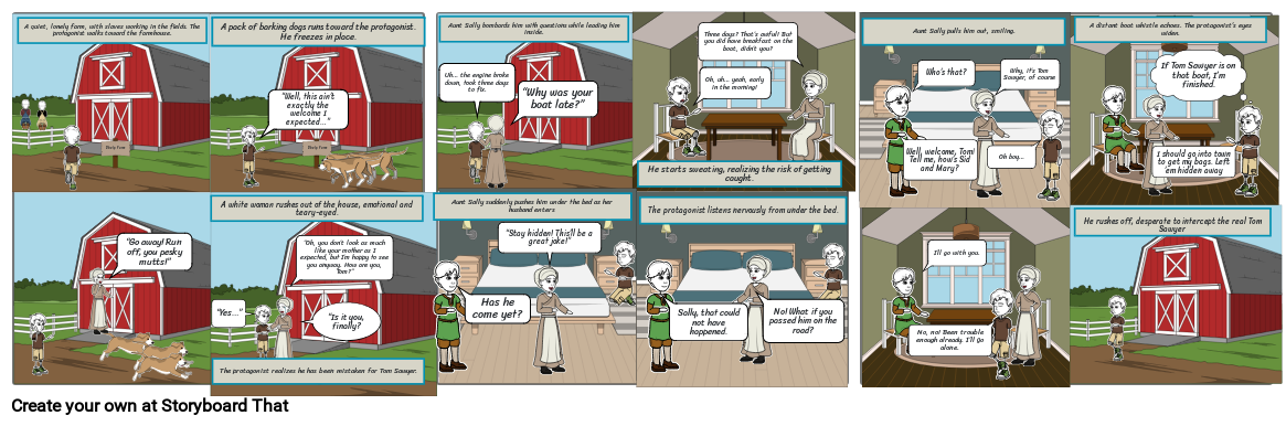 He rushes off, desperate to intercept the real Tom Sawyer