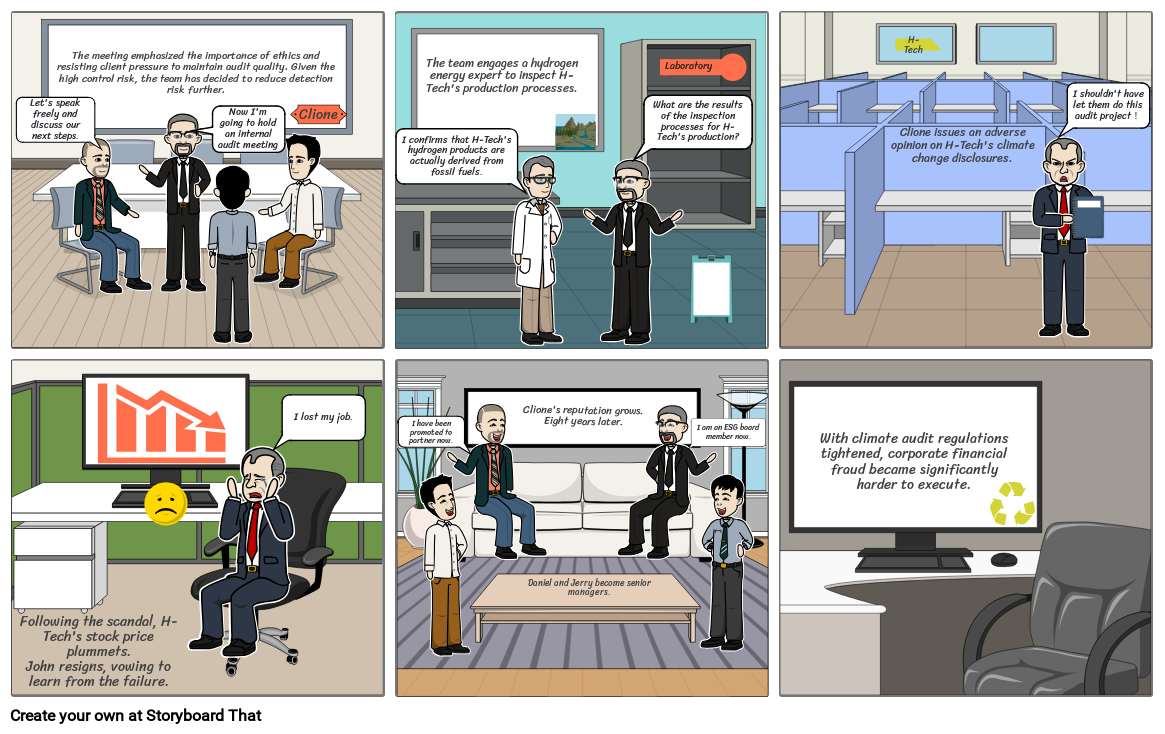 Following the scandal, H-Tech's stock price plummets.John resigns, vowing to learn from the failure.