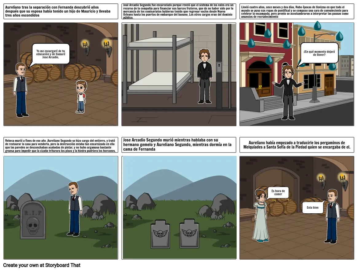 Jose Arcadio Segundo murió mientras hablaba con su hermano gemelo y Aureliano Segundo, mientras dormía en la cama de Fernanda
