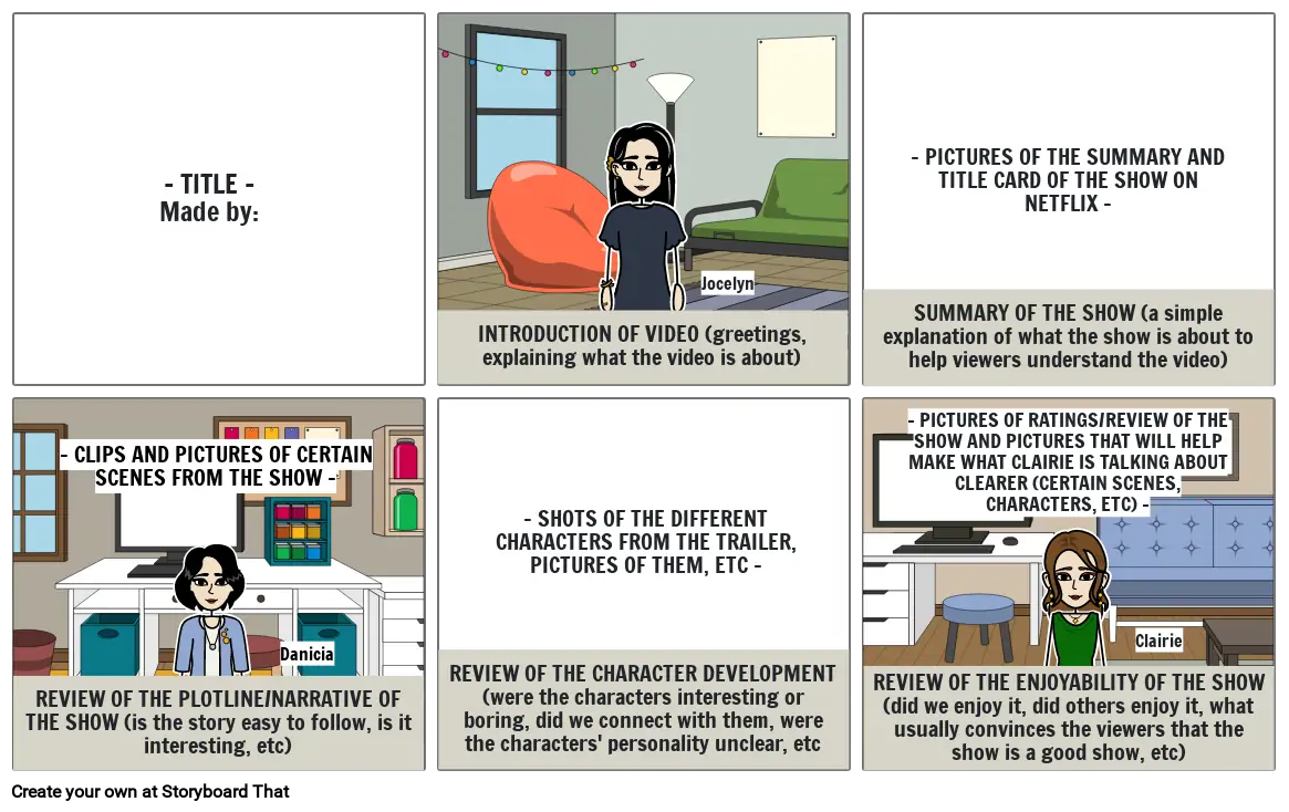 - PICTURES OF RATINGS/REVIEW OF THE SHOW AND PICTURES THAT WILL HELP MAKE WHAT CLAIRIE IS TALKING ABOUT CLEARER (CERTAIN SCENES, CHARACTERS, ETC) -