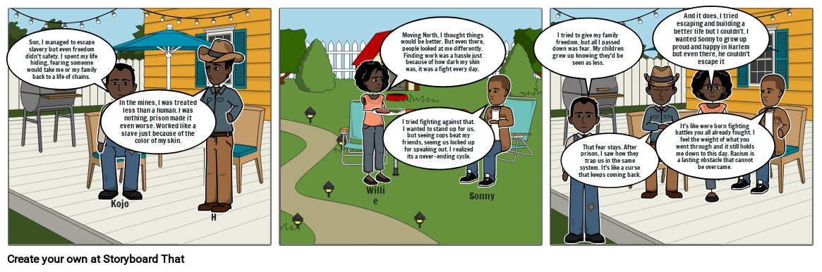 And it does, I tried escaping and building a better life but I couldn't. I wanted Sonny to grow up proud and happy in Harlem but even there, he couldn't escape it