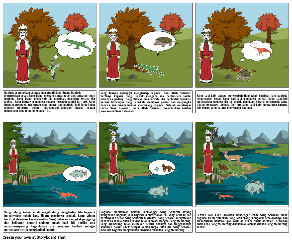 Baginda menitahkan belatuk memanggil Sang Bubut. Bagindamenanyakan sebab Sang Bubut memalu gendang perang tanpa perintah baginda. Sang Bubut menjawab dia membuat demikian kerana dia melihat Sang Biawak membawa pedang tercabut sambil lari-lari. Sang Bubut menyangka ada musuh yang menyerang baginda. Jadi Sang Bubut memalu gendang dengan bersungguh-sungguh supaya segala hulubalang tahu tentang kejadian itu.