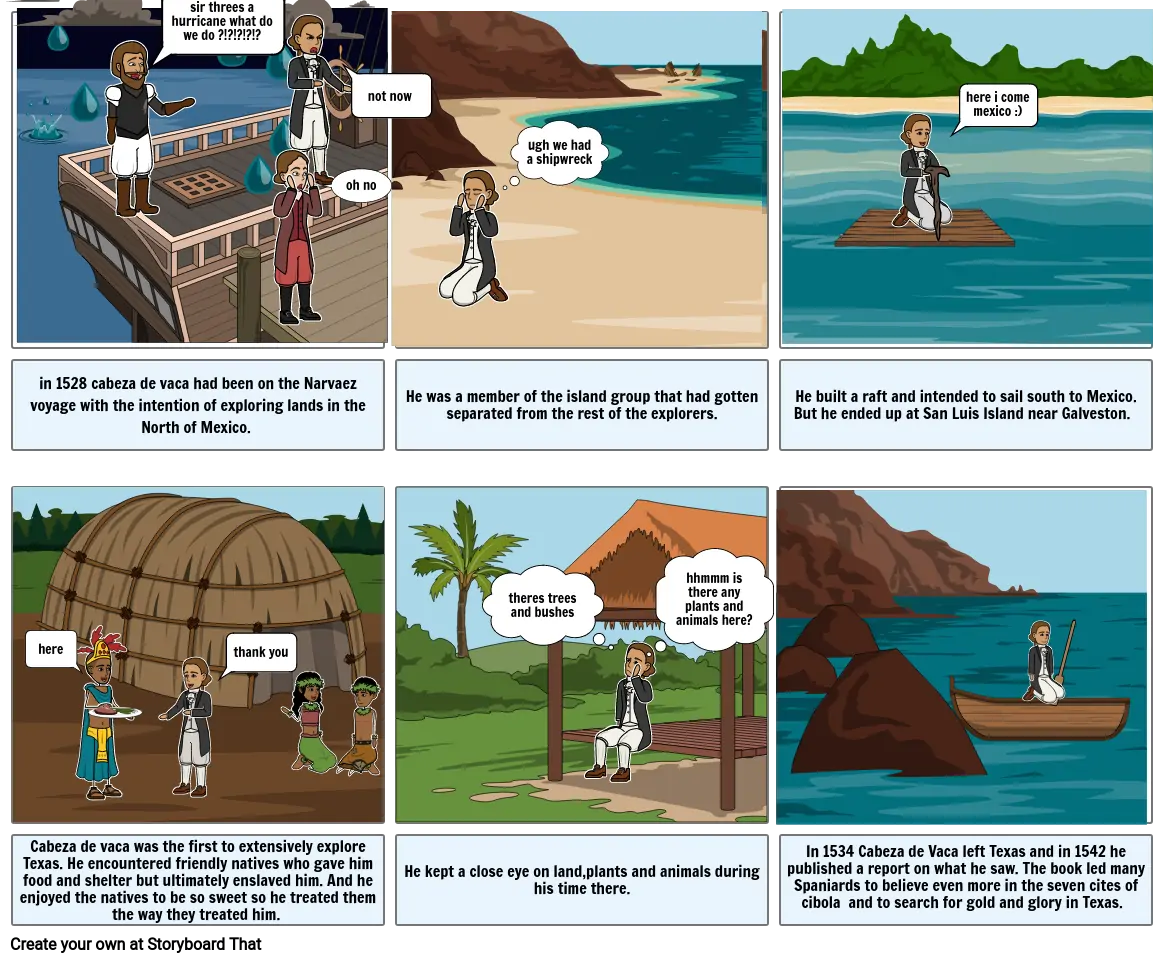 Cabeza de vaca was the first to extensively explore Texas. He encountered friendly natives who gave him food and shelter but ultimately enslaved him. And he enjoyed the natives to be so sweet so he treated them the way they treated him.