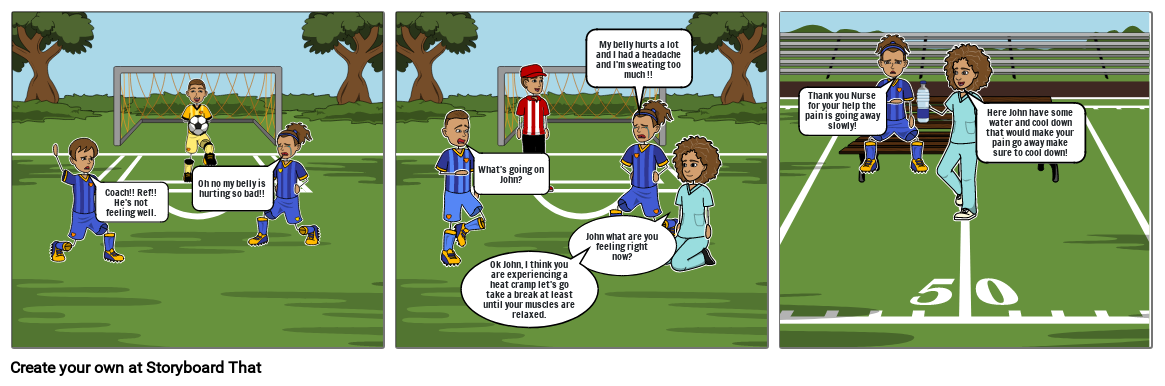 Here John have some water and cool down that would make your pain go away make sure to cool down!