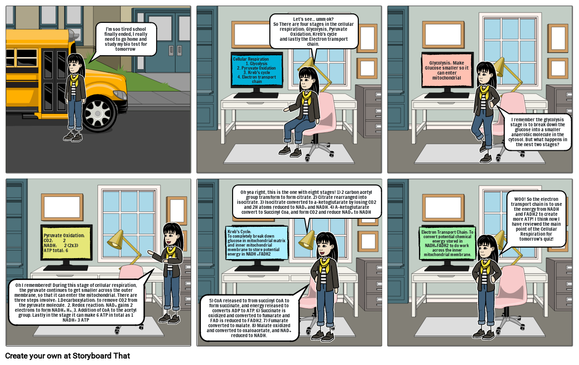 Let's see... umm ok? So There are four stages in the cellular respiration: Glycolysis, Pyruvate Oxidation, Kreb's cycleand lastly the Electron transport chain.