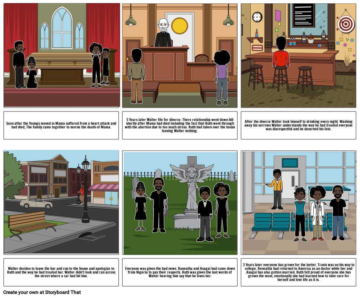 5 Years later Walter file for divorce. There relationship went down hill shortly after Mama had died including the fact that Ruth went through with the abortion due to too much stress. Ruth had taken over the house leaving Walter nothing.