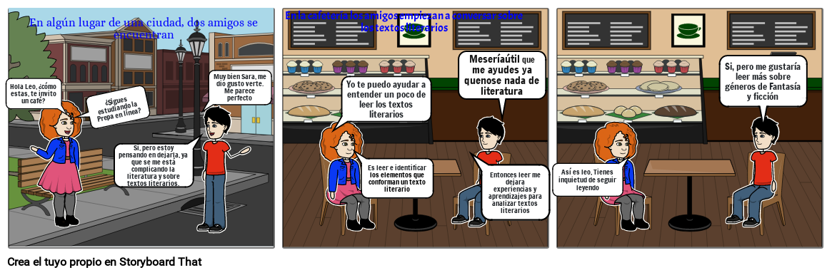 En la cafetería los amigos empiezan a conversar sobre los textos literarios