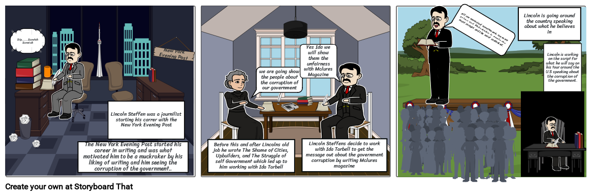 Before this and after Lincolns old job he wrote The Shame of Cities, Upbuilders, and The Struggle of self Government which led up to him working with Ida Tarbell