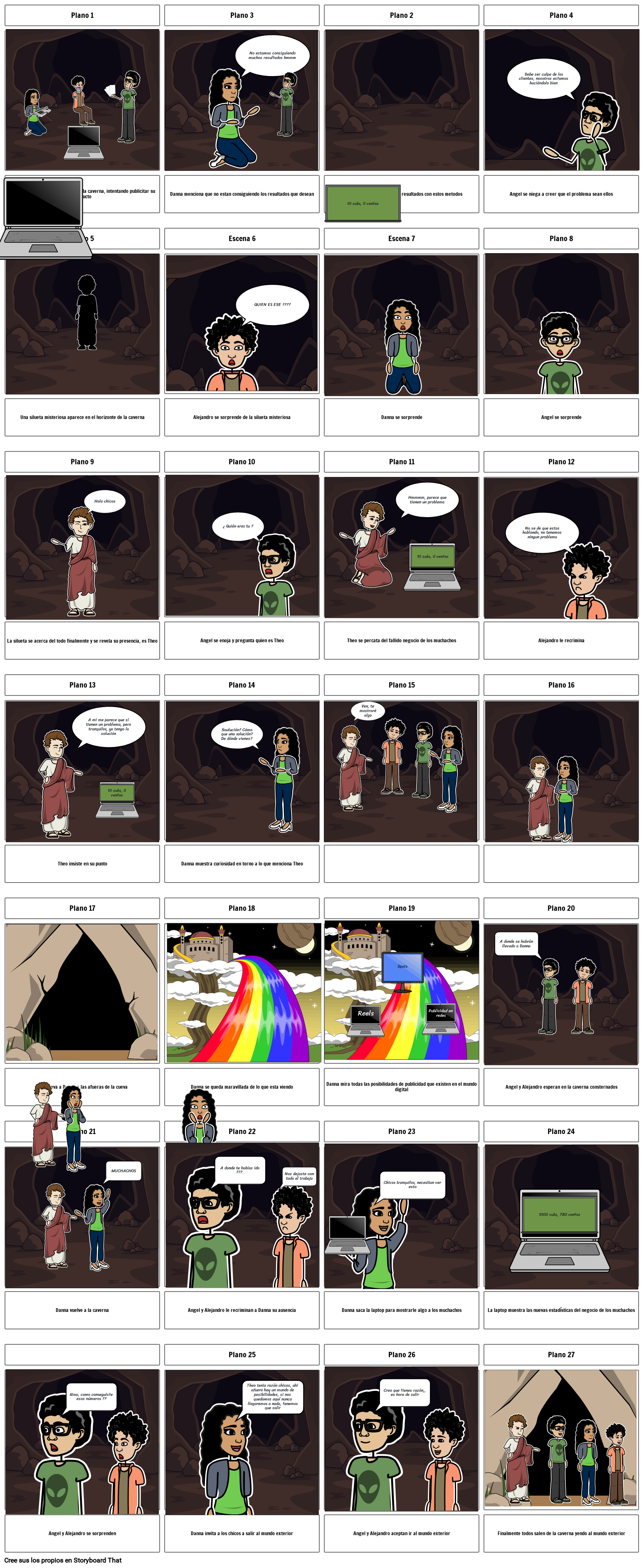 Danna , Alejandro y Angel estan en la caverna, intentando publicitar su producto