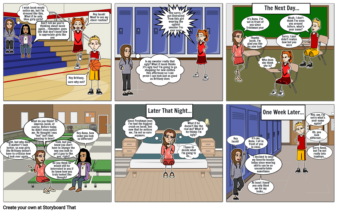 In this medium, you can see a girl is struggling with her self-appearance, when she decides to do what she thinks is the easier option and changes her look, she later learns that it is not always the best choice. In Robert Frost's, "The Road Not Taken," he talks about how life presents two choices for people, the easier choice or the harder choice, and when we make decisions these choices, we learn the reasons to these when we decide the impact it makes in our lives.