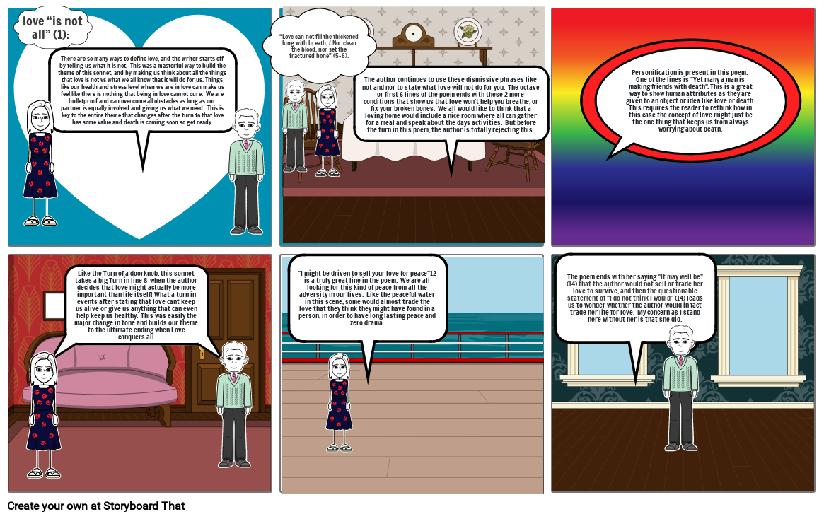 Like the Turn of a doorknob, this sonnet takes a big Turn in line 8  when the author decides that love might actually be more important than life itself! What a turn in events after stating that love cant keep us alive or give us anything that can even help keep us healthy.  This was easily the major change in tone and builds our theme to the ultimate ending when Love conquers all