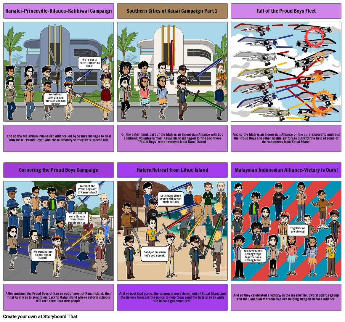 Kauai Island by getting new recruits and calling the police to help their cause. Ultimately they won the Battle of Kauai Island and those "haters" were forced away. But what about Sword Spirit's group? Sword Spirit's group decided to go to the other islands to avoid being overwhelmed by the 3 opposing groups in Honolulu which could cause the Allies to lose the conflict. We'll see what they are doing in the next storyboard. Also, some of the Hawaiian Islands are very restricted because of official laws. Please note: This story is not real even if it's made by me so if this is very sensitive, this won't be the story for you.