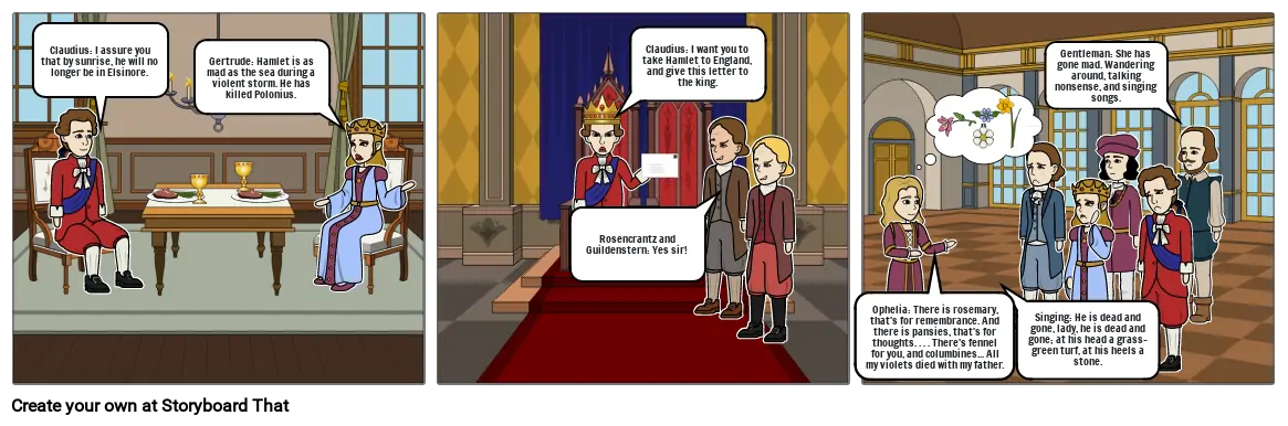 Claudius: I want you to take Hamlet to England, and give this letter to the king.