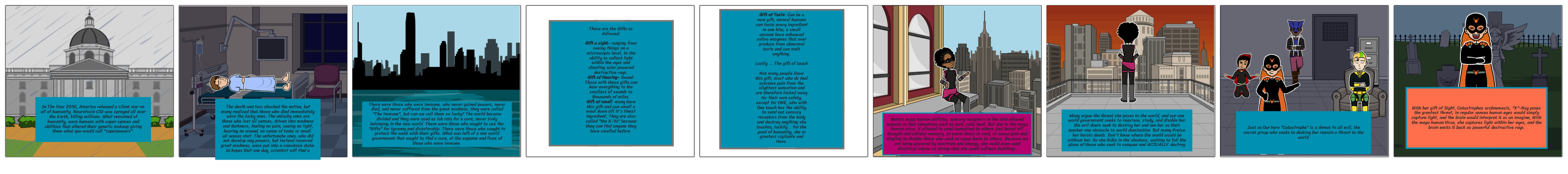 In The Year 2030, America released a silent war on all of humanity. Neurotoxin C12 was sprayed all over the Earth, killing millions. What remained of humanity, were humans with super senses and abilities that altered their genetic makeup giving them what you would call "superpowers".