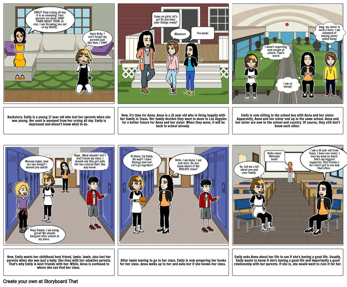 Now, it's time for Anna. Anna is a 16 year old who is living happily with her family in Texas. Her family decides they want to move to Los Angeles for a better future for Anna and her sister. When they move, it will be back to school already.