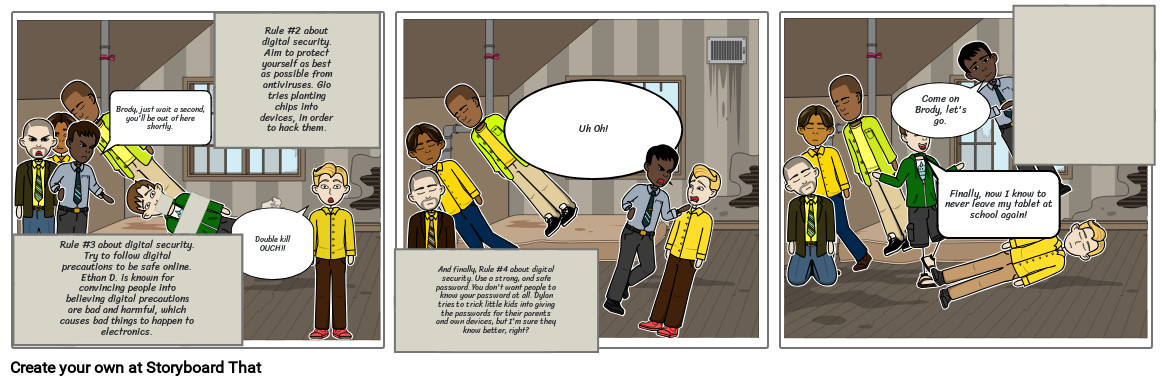 And finally, Rule #4 about digital security. Use a strong, and safe password. You don't want people to know your password at all. Dylan tries to trick little kids into giving the passwords for their parents and own devices, but I'm sure they know better, right?