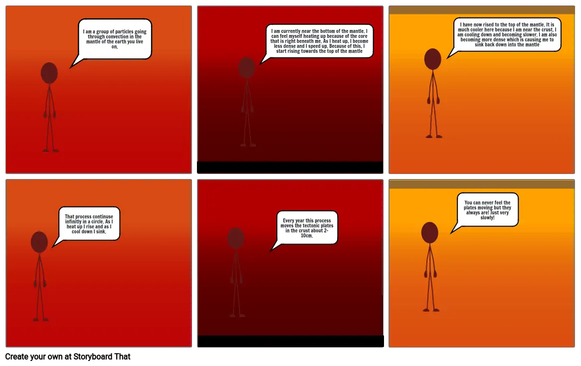 I am currently near the bottom of the mantle. I can feel myself heating up because of the core that is right beneath me. As I heat up, I become less dense and I speed up. Because of this, I start rising towards the top of the mantle