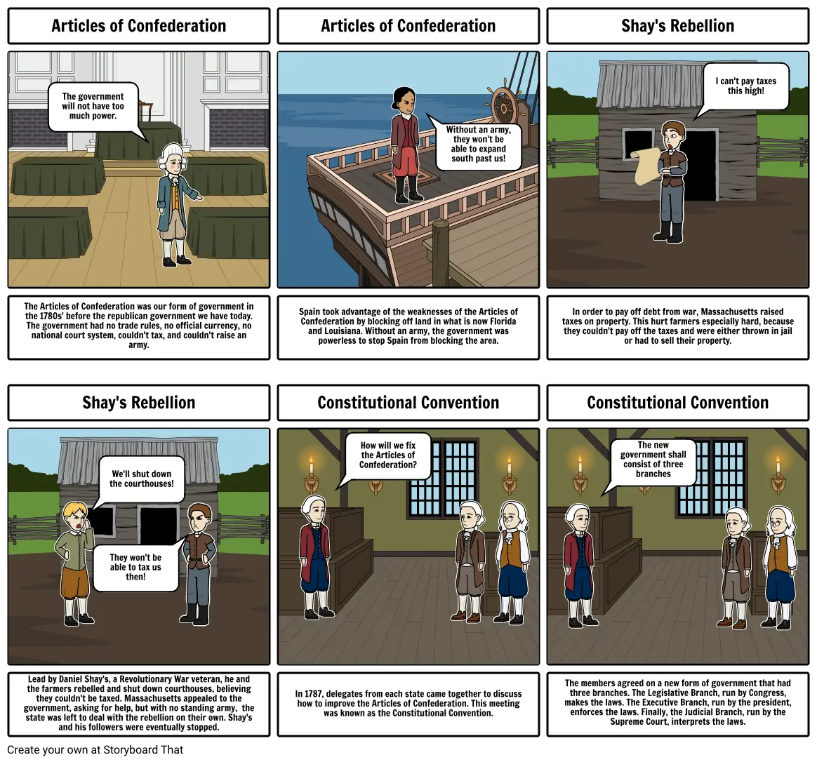 The Articles of Confederation was our form of government in the 1780s' before the republican government we have today. The government had no trade rules, no official currency, no national court system, couldn't tax, and couldn't raise an army.