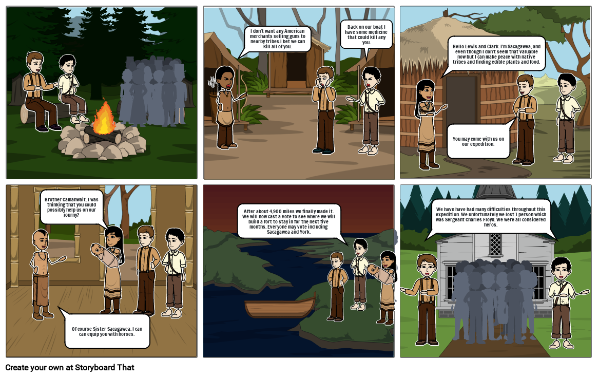 Hello Lewis and Clark. I'm Sacagawea, and even though I don't seem that valuable now but I can make peace with native tribes and finding edible plants and food.