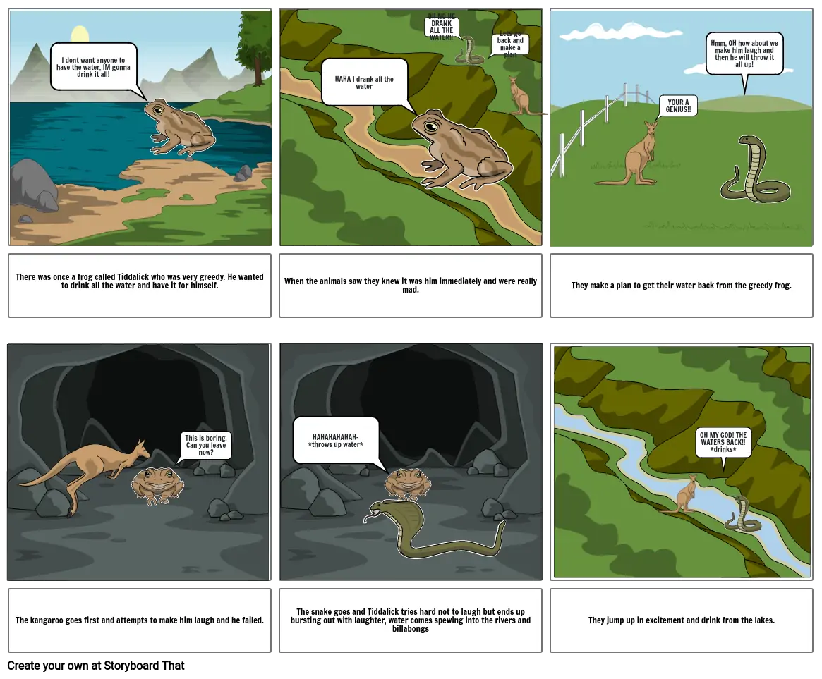 There was once a frog called Tiddalick who was very greedy. He wanted to drink all the water and have it for himself.
