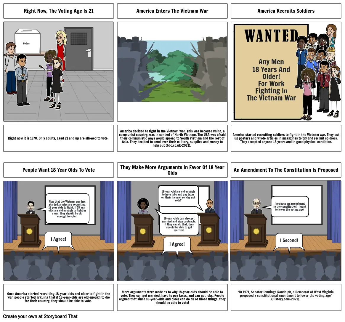 Now that the Vietnam war has started, armies are recruiting 18 year olds to fight. If 18 year olds are old enough to fight in a war, they should be old enough to vote!