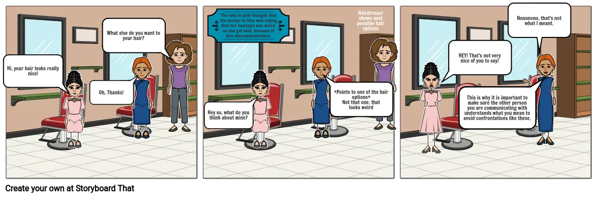 The lady in pink thought that the person in blue was saying that her hairstyle was weird, so she got mad, because of this miscommunication.