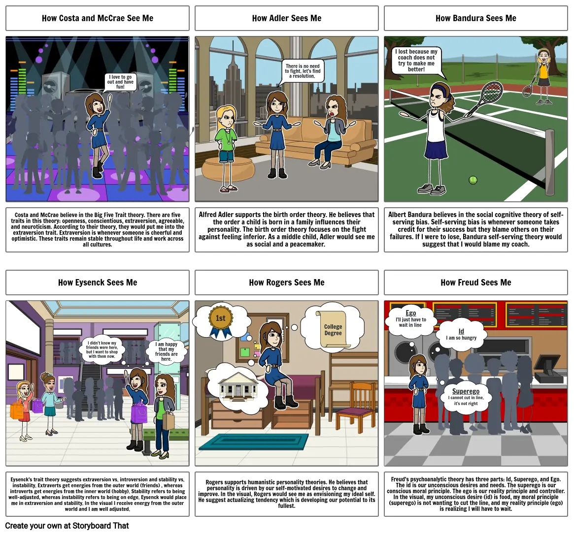 Rogers supports humanistic personality theories. He believes that personality is driven by our self-motivated desires to change and improve. In the visual, Rogers would see me as envisioning my ideal self. He suggest actualizing tendency which is developing our potential to its fullest.