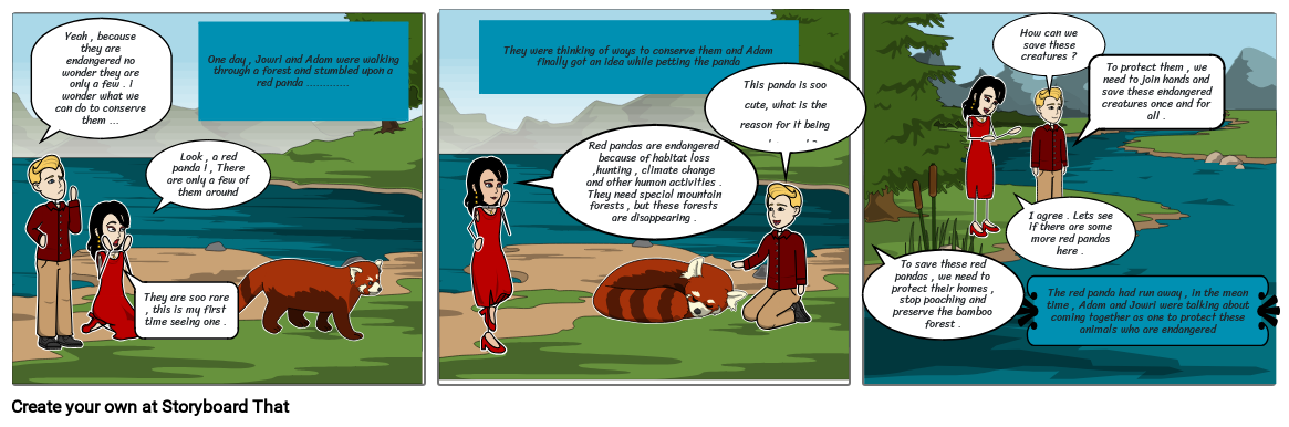 One day , Jowri and Adam were walking through a forest and stumbled upon a red panda .............
